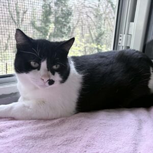 Ami je eno leto stara tigrasto-bela samička, drobne rasti. V naročju se ne znajde najbolje, zato pa toliko rajši poležava na tleh, kjer ji ni nikoli dovolj božanja in pozornosti. Z drugimi muckami se dobro razume, je pa slabovidna, zato zanjo iščemo izključno notranji dom.